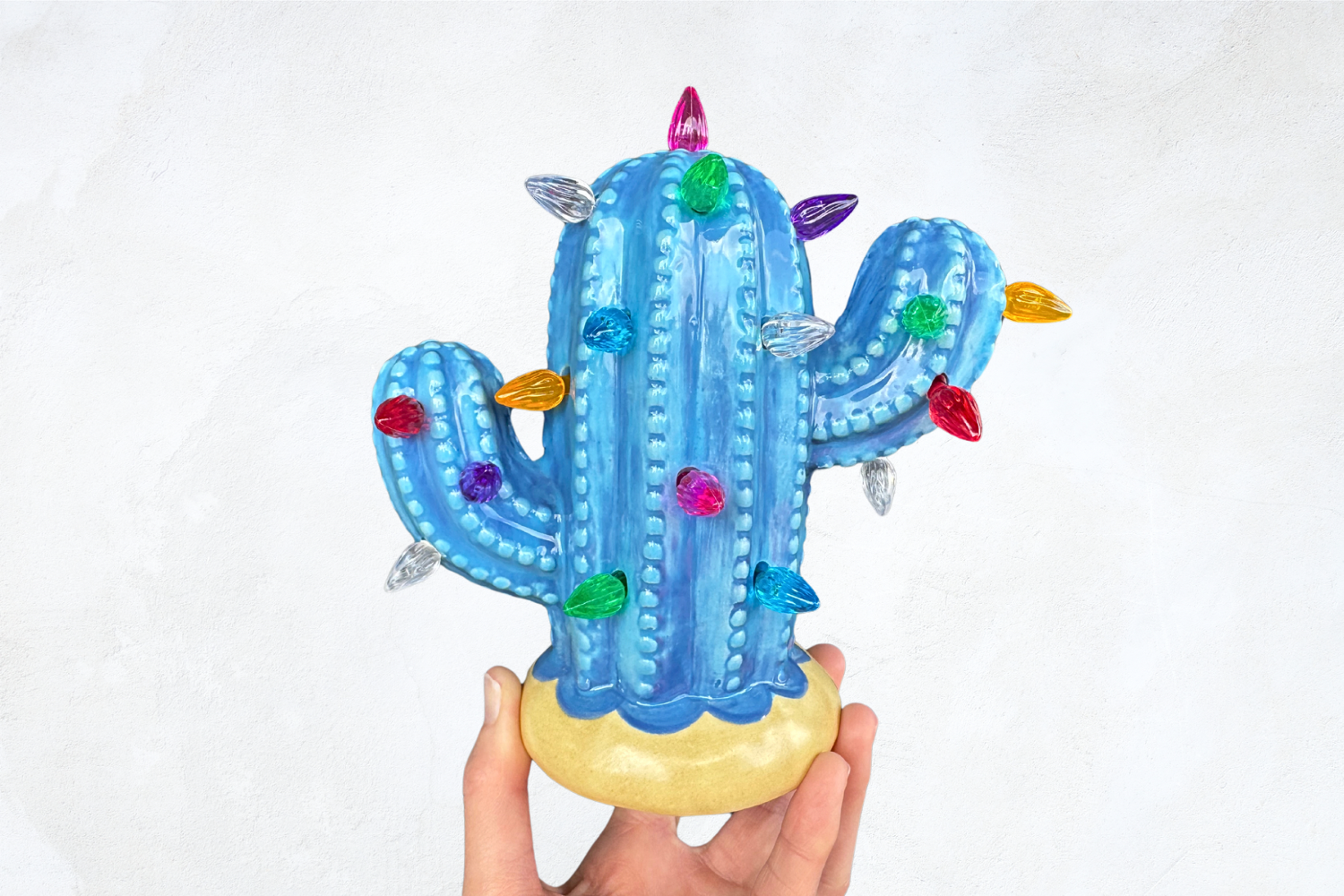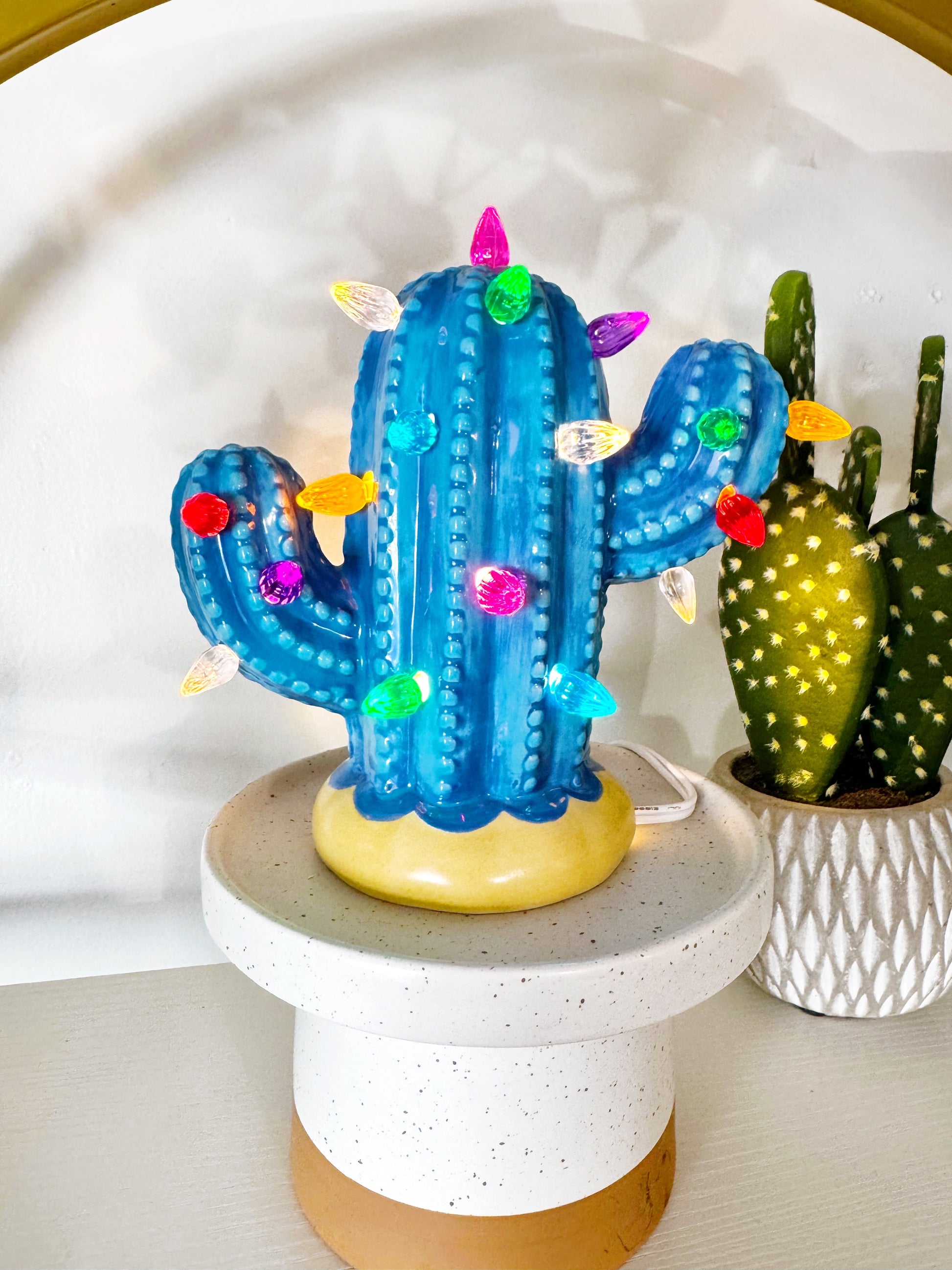 Bright Blue Baby Lighted Ceramic Cactus Tree