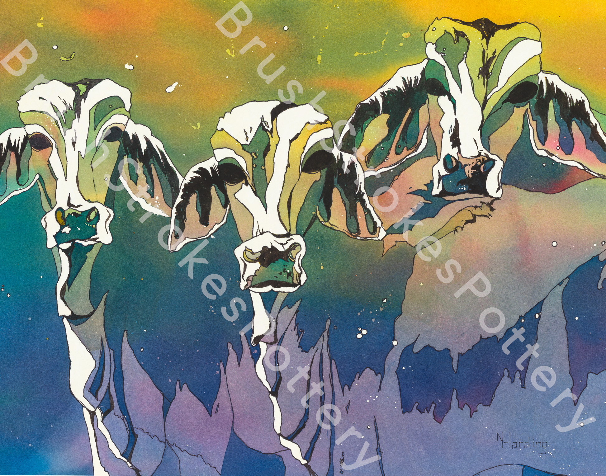Colorful Cows Watercolor Print