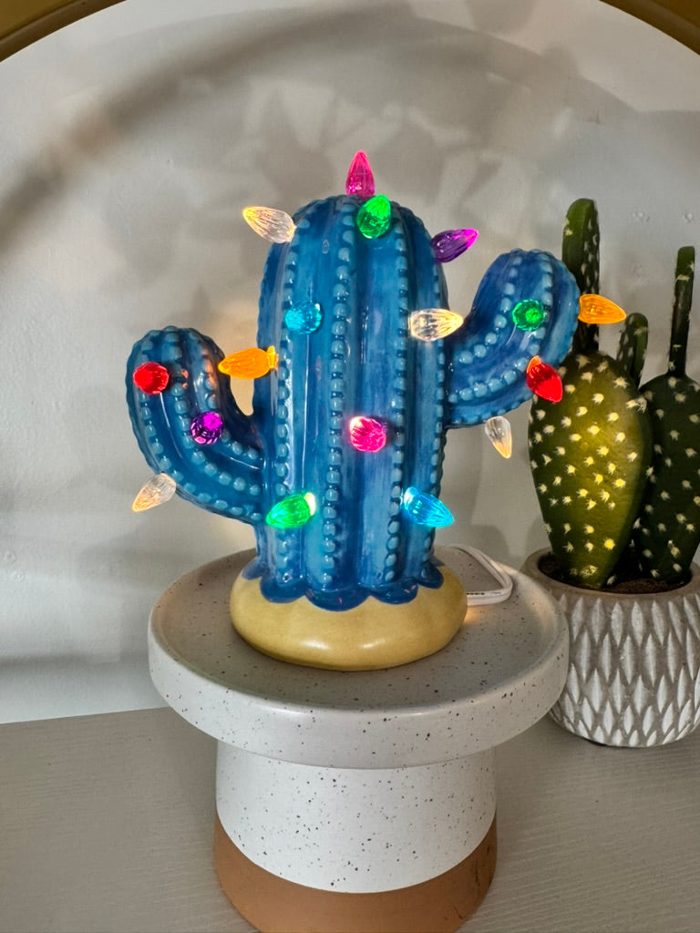 Denim Blue Baby Lighted Ceramic Cactus Tree