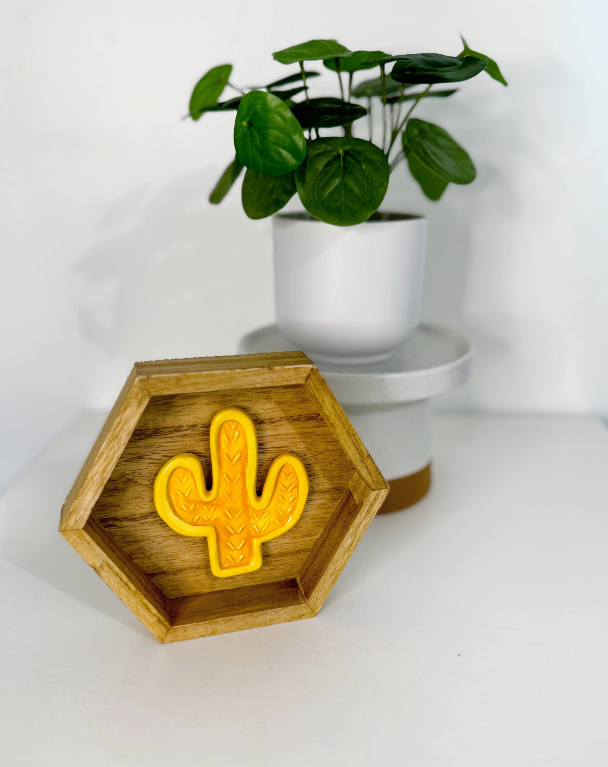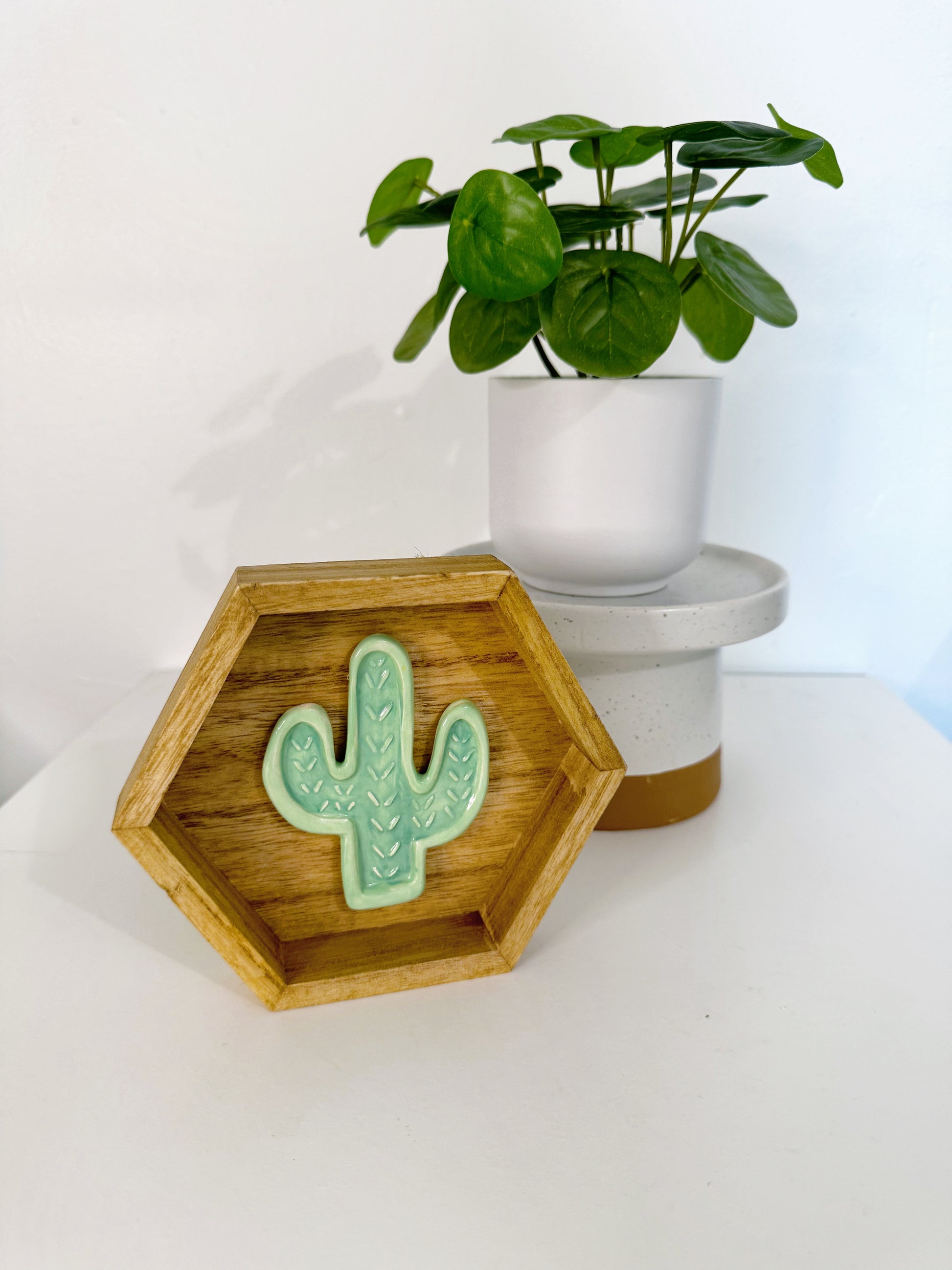 Hexagon Ceramic Cactus Wall Art - Golden Oak