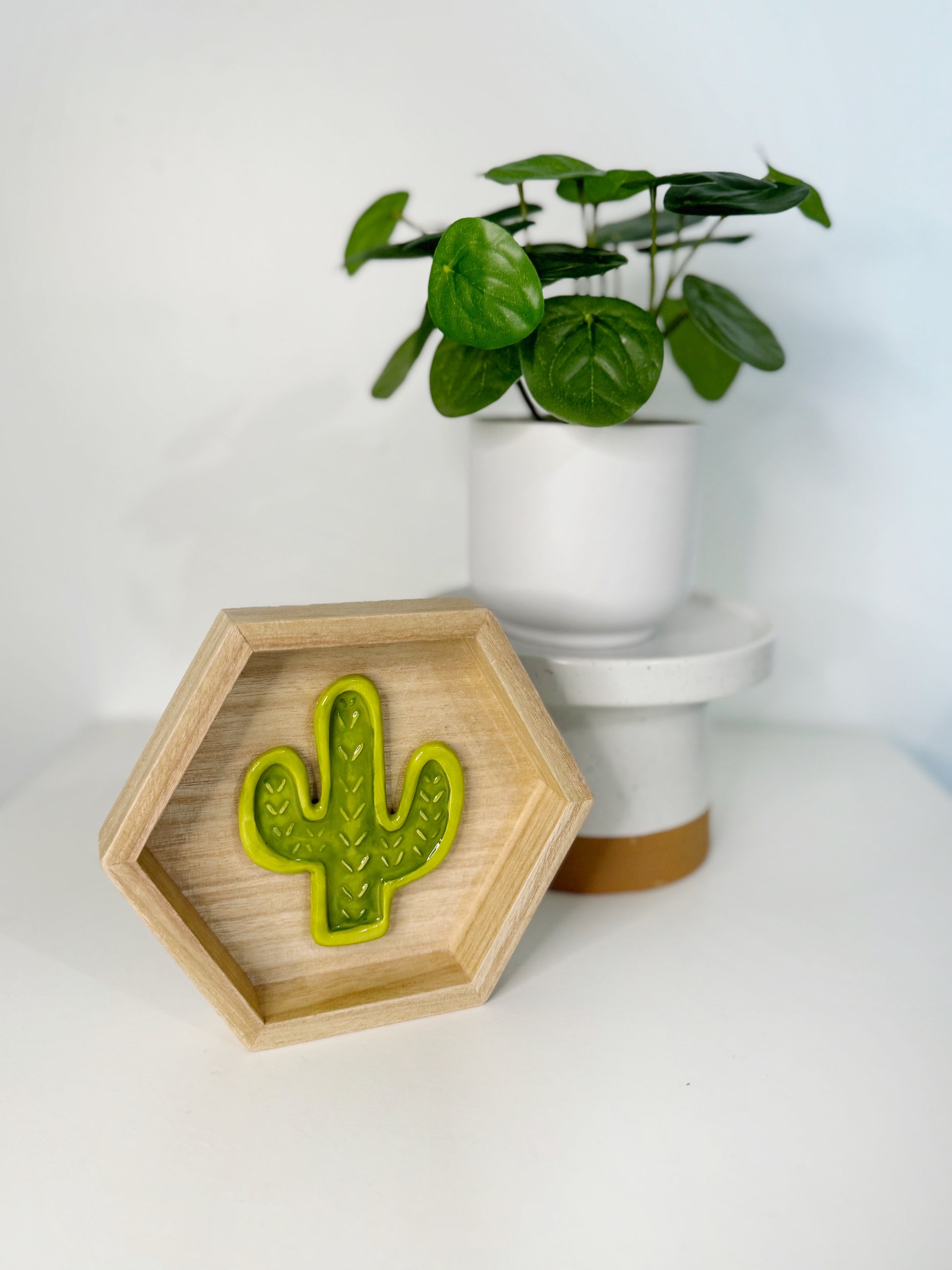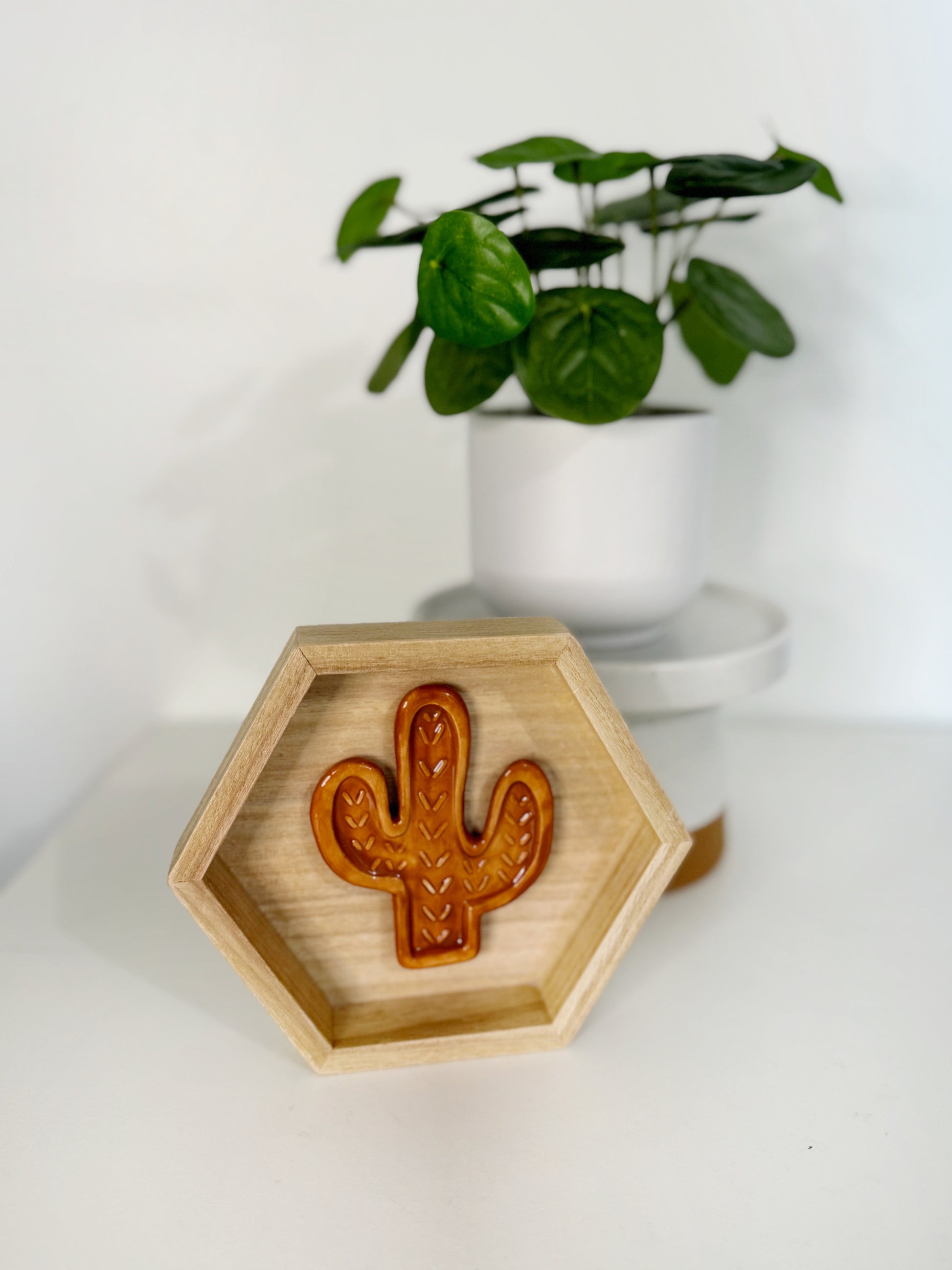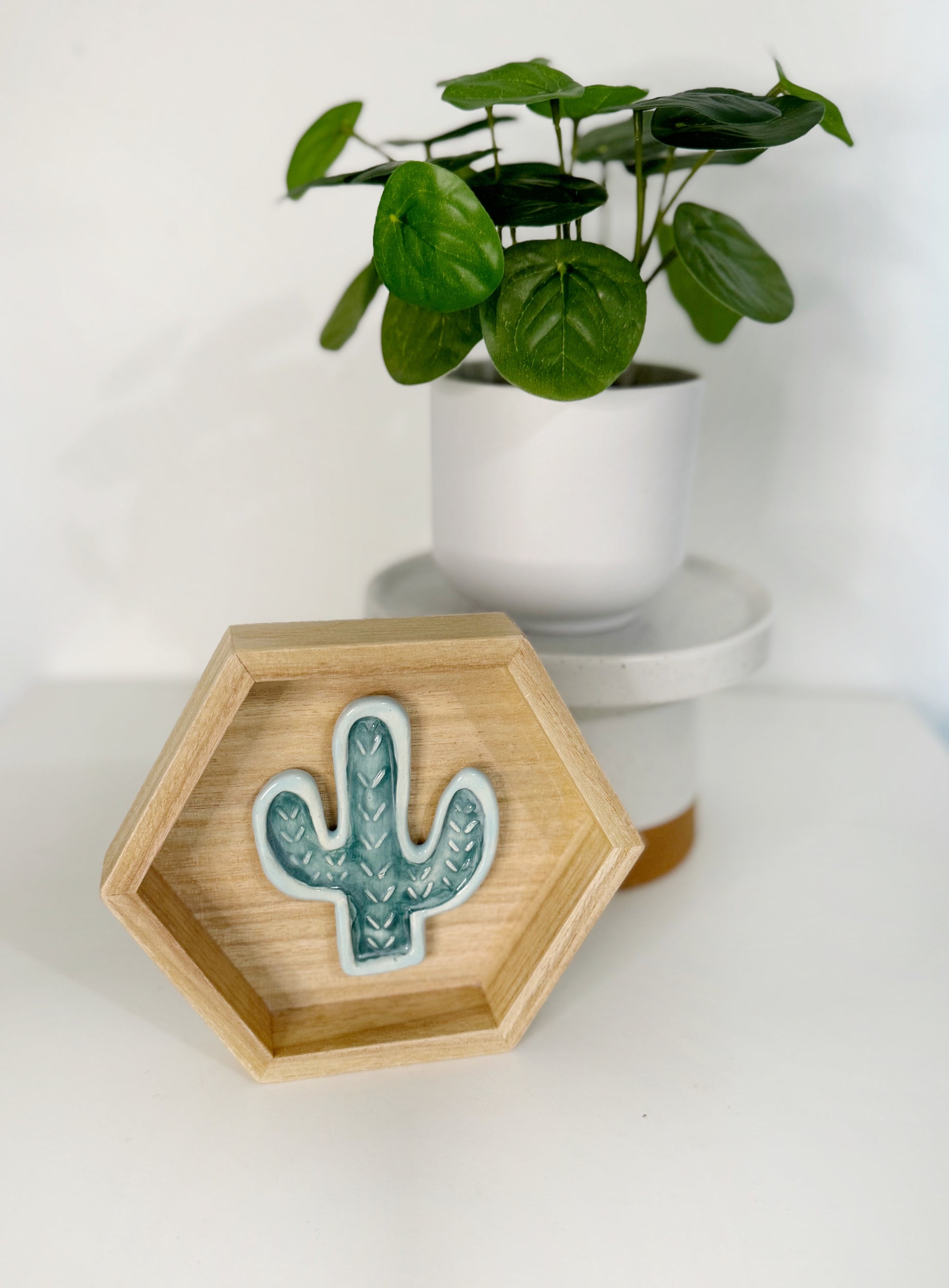 Hexagon Ceramic Cactus Wall Art - Light Pine