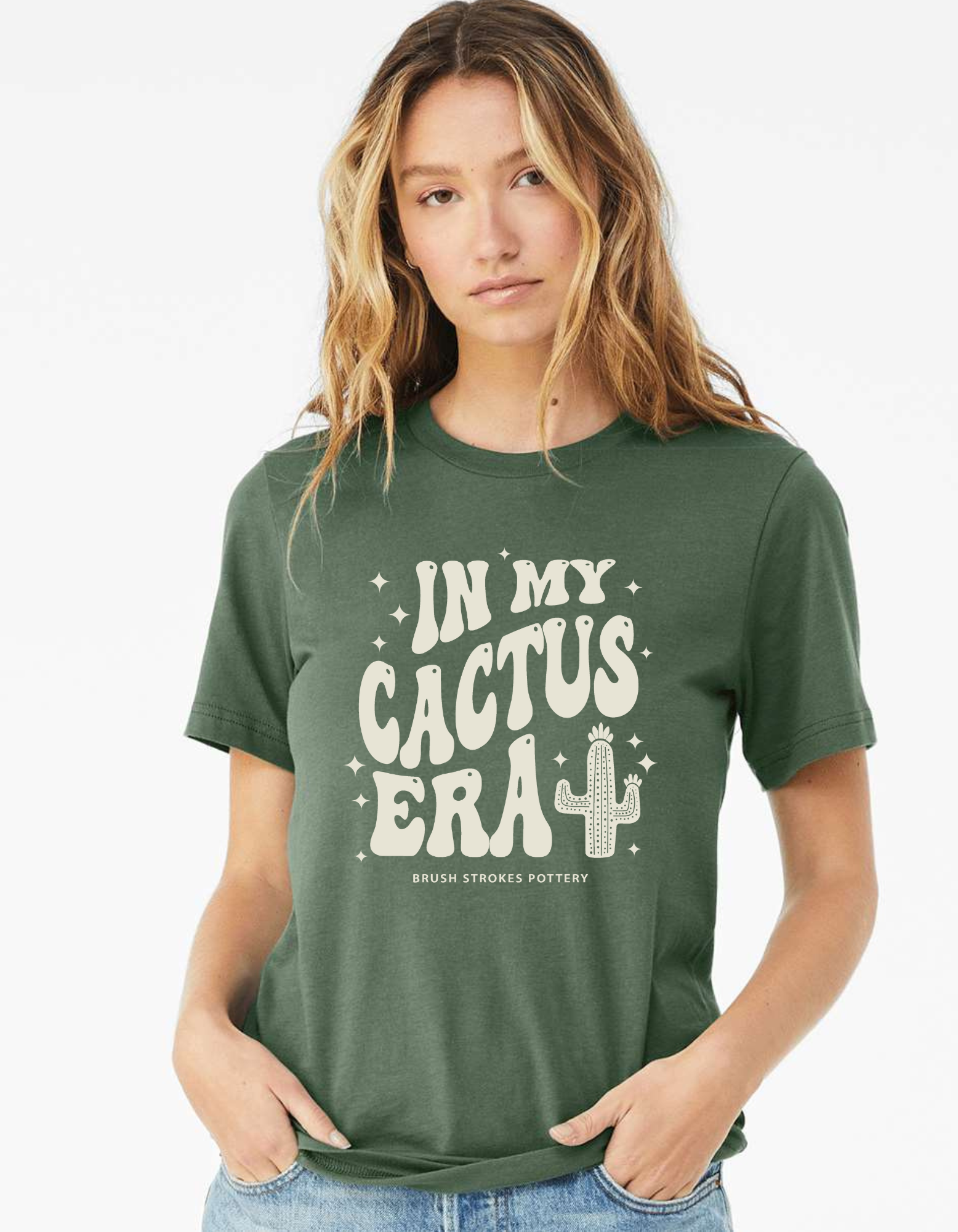 Step into your *Cactus Era* with this adorable and trendy tee! Crafted from soft, breathable fabric in a rich pine green shade, this shirt is perfect for those who love to embrace their laid-back, spiky side.