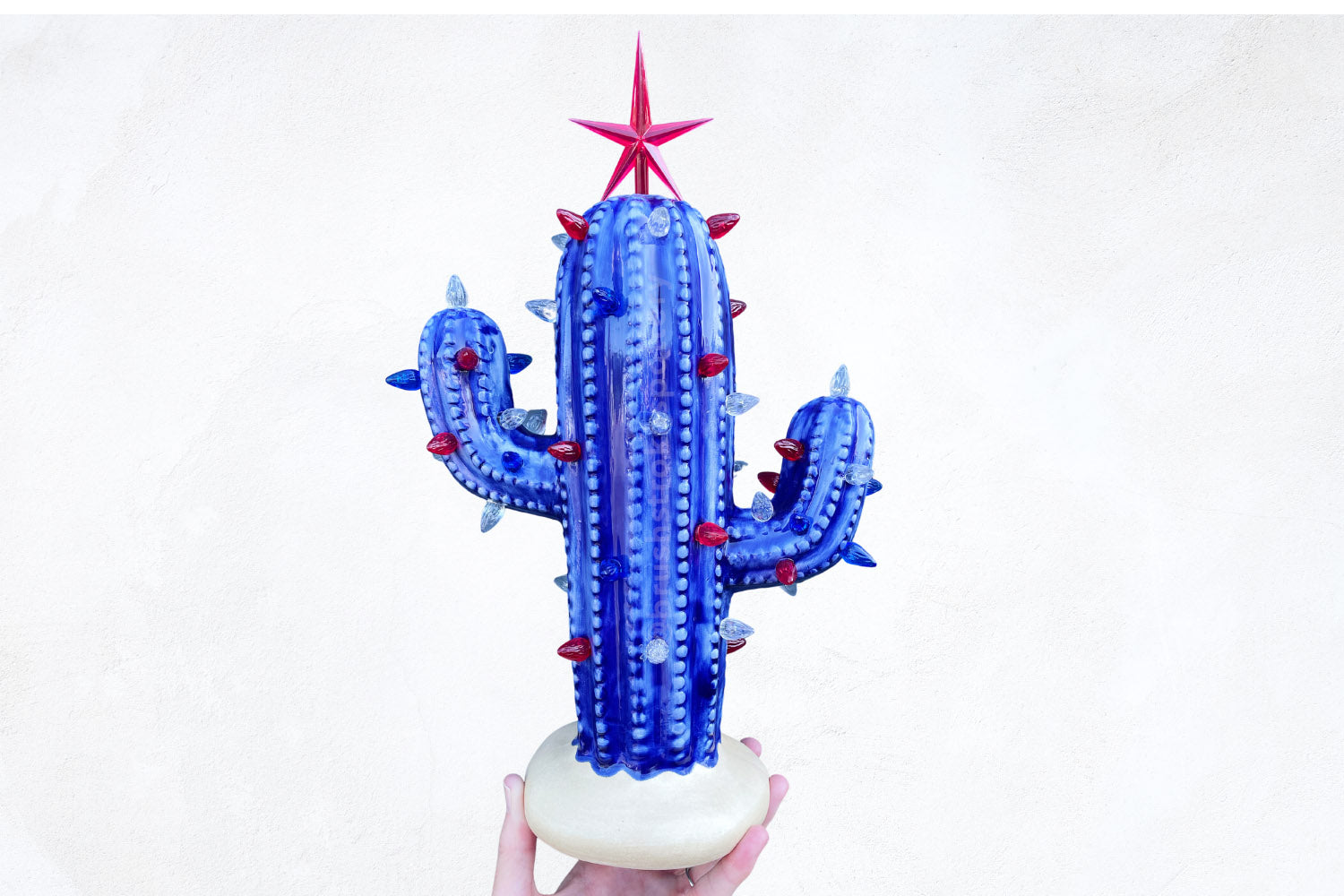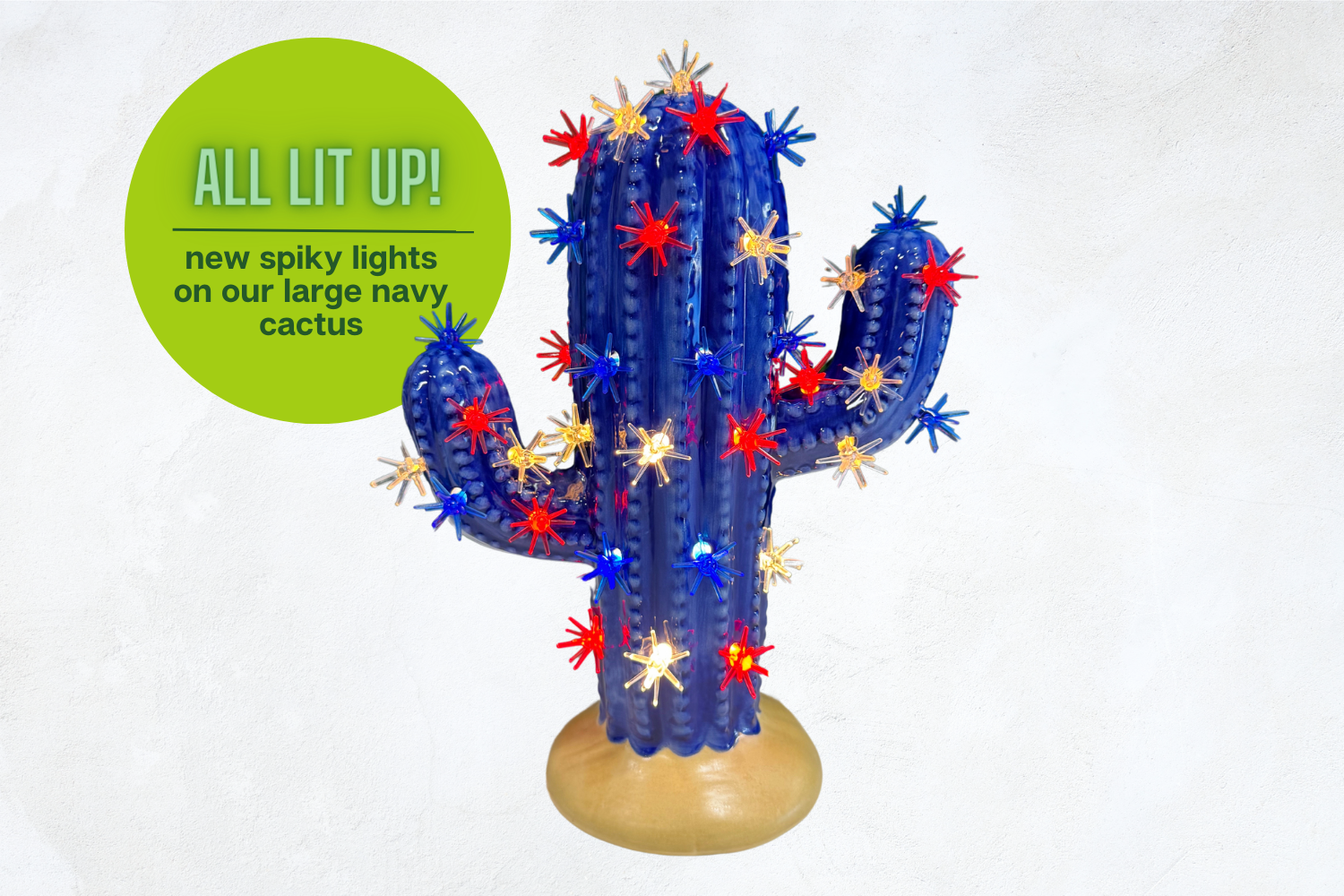 U.S.A. 🇺🇸 Navy Blue Lighted Ceramic Cactus Tree.