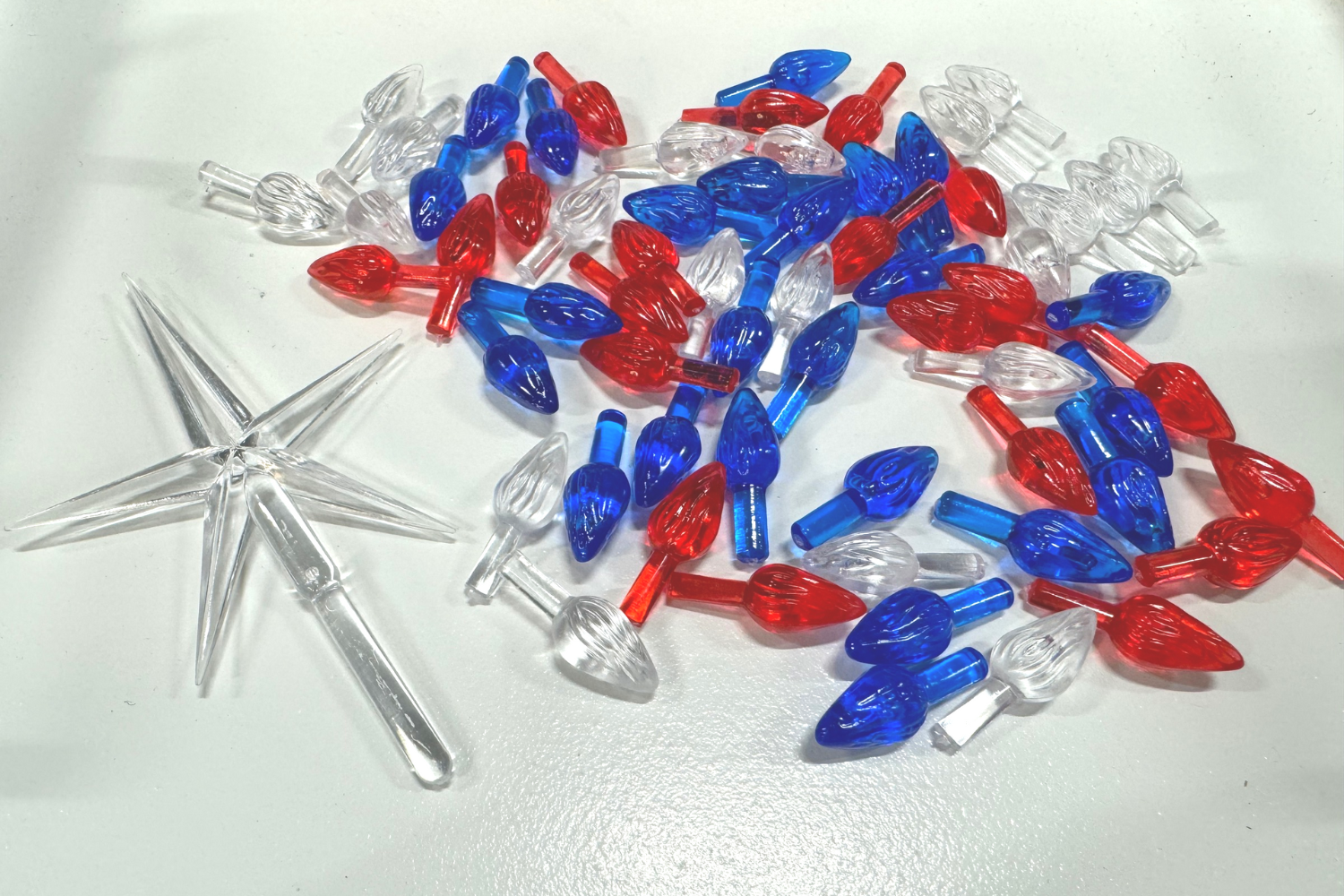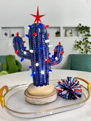 Born in the USA! This combination of red, blue and white lights will make any tree shine. Pack includes 65 lights total plus 1 white clear star. Enough to fill a large cactus tree. Can also fit the Baby and Medium Cactus size trees in our shop.